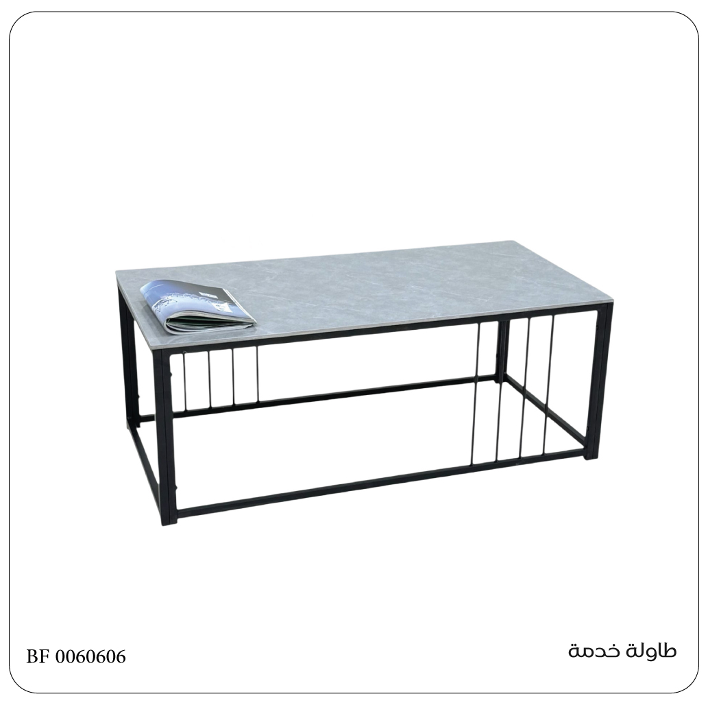 طاولة خدمة بتصميم مستطيل عصري، بسطح سيراميك عالي الجودة يوفر لمسة عملية وأنيقة في نفس الوقت. تتميز بقاعدة معدنية سوداء متينة تضيف ثباتًا وأناقة عصرية، مما يجعلها مثالية للاستخدام اليومي أو كقطعة ديكور إضافية في غرفة المعيشة. الطاولة مناسبة لتقديم الضيافة أو عرض الكتب والإكسسوارات، وتجمع بين العملية والجمال في تصميم واحد.