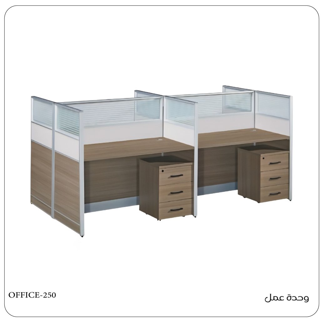 استمتع ببيئة عمل متكاملة مع وحدة عمل مكتبية رباعية خشبية بإطار معدني من اثاثنا، المصممة لتناسب فرق العمل وتوفر مساحة عملية لأربع أشخاص في نفس الوقت مع الحفاظ على الخصوصية لكل مستخدم. تحتوي الوحدة على أسطح خشبية واسعة تناسب أجهزة الكمبيوتر والملفات، إضافة إلى أدراج جانبية عملية بثلاثة أدراج لكل مكتب لتخزين الأدوات والمستندات. الإطار المعدني المتين يمنحها ثباتاً عالياً، بينما يضيف اللون الخشبي الطبيعي لمسة دفء وأناقة عصرية تعزز من أجواء المكتب.